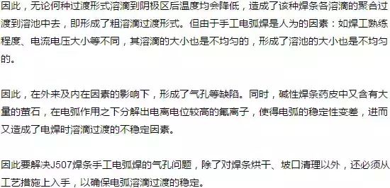 因为电流过大,明显的使焊芯电阻热猛增,焊条发红,造成焊条药皮中的有机物过早分解而形成气孔;而电流过小。