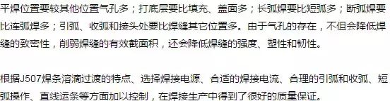 J507焊条焊接接头产生气孔的几率比其他部位要大,这是因为接头处往往在焊接时比其他部位的温度略低。